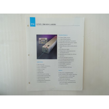 Laser LEXEL 3500 krypton with Model 3500 P/N 00-137-040 Controller, adjusted for 568nm with etalon.